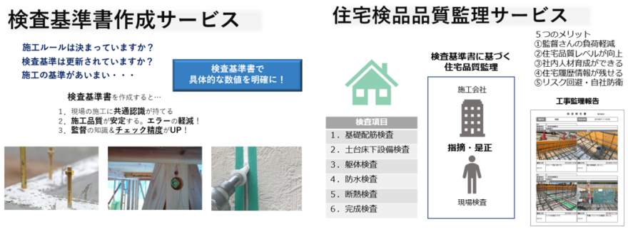 更にはその検査基準にあわせて『住宅検査品質監理サービス』もおこないます。コロナ禍や遠隔地で現場検査に伺えない場合でもリモートで品質監理していくように考えています。