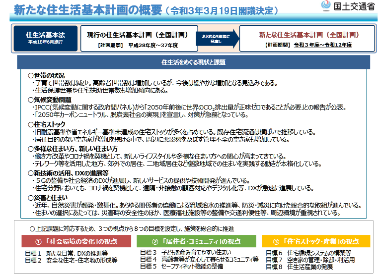 住生活基本計画とは住生活の向上、促進に関する計画で、