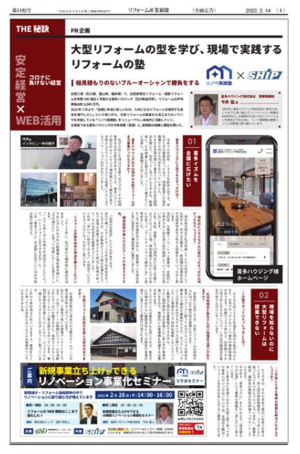 新着情報 新着情報 リフォーム産業新聞に掲載されました リフォーム産業新聞に掲載されました 2022年2月14日(月)発行のリフォーム産業新聞に「リノベ実践塾」の記事が掲載されました。 リノベーション事業化セミナーの詳細はこちらをクリック>>> < 前の記事へ 【プレスリリース】地域密着 性能向上リノベーション『リノベ実践塾 』 開催 > 次の記事へ 【4/7開催】性能向上リノベの会 お知らせ