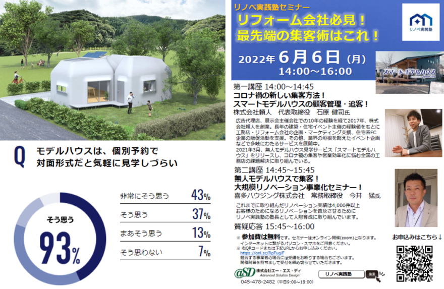 無人モデルハウスによる最先端の集客事例のセミナーを6月6日におこないます。