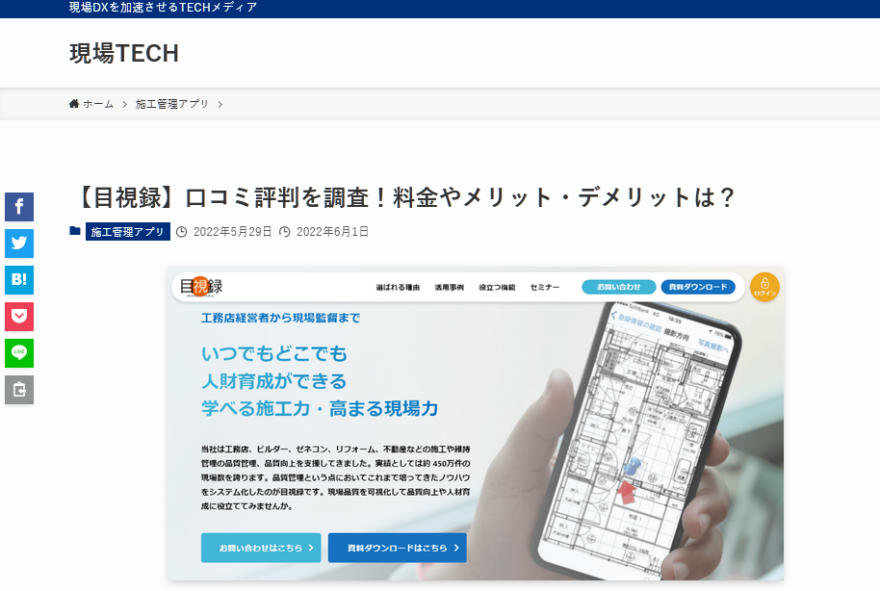 【メディア掲載】「現場TECH」-現場DXを加速させるTECHメディアに目視録を紹介