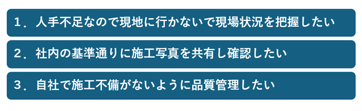 1.人手不足なので現地に行かないで現場状況を把握したい