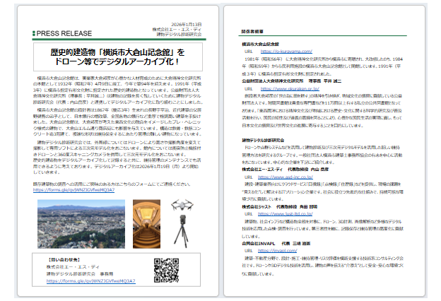 【プレスリリース】歴史的建造物「横浜市大倉山記念館」を ドローン等でデジタルアーカイブ化!