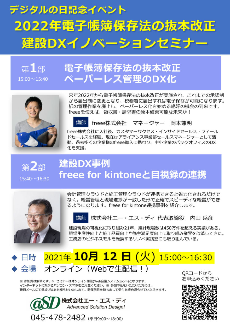 【10/12開催】デジタルの日記念イベント 2022年電子帳簿保存法の抜本改正/建設DXイノベーションセミナー