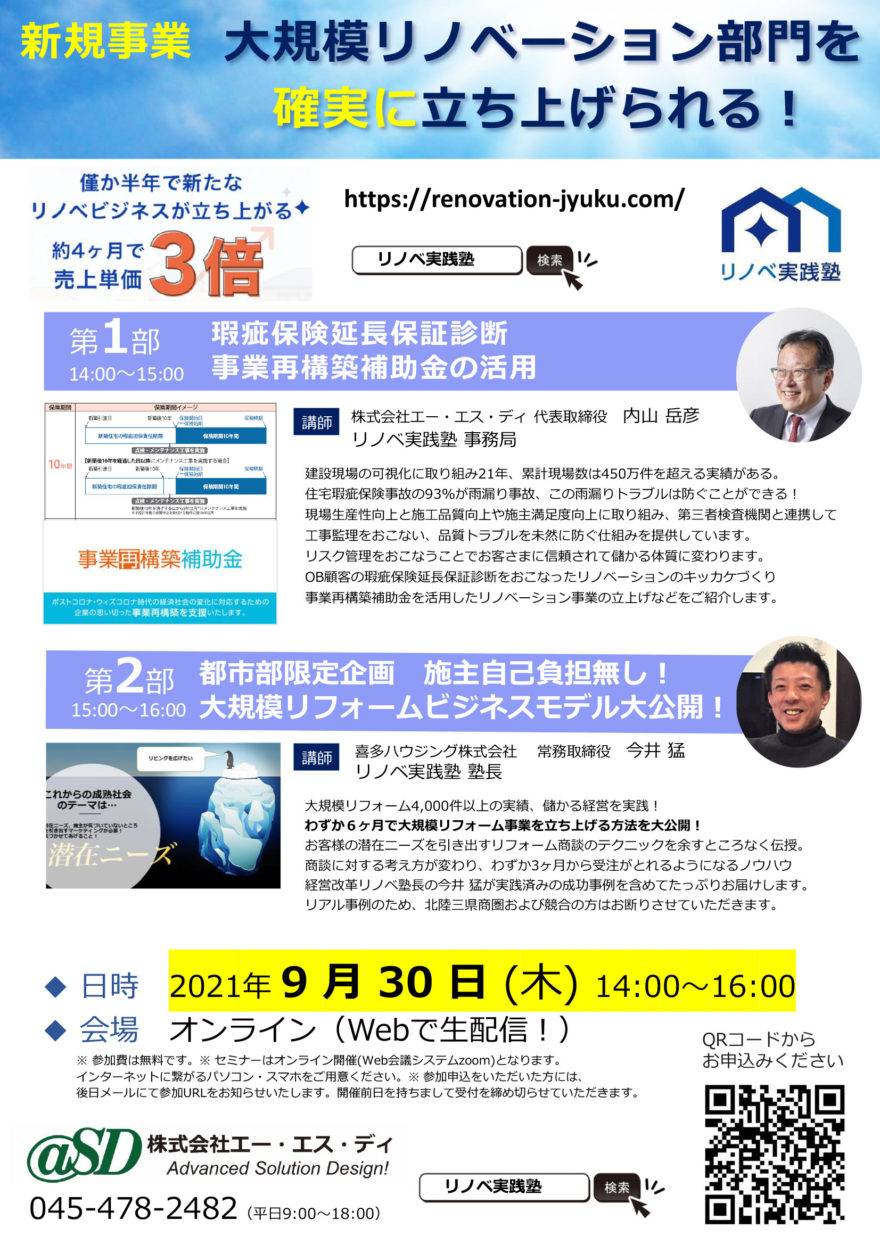 【9/30】新規事業 大規模リノベーション部門を確実に立ち上げられる!