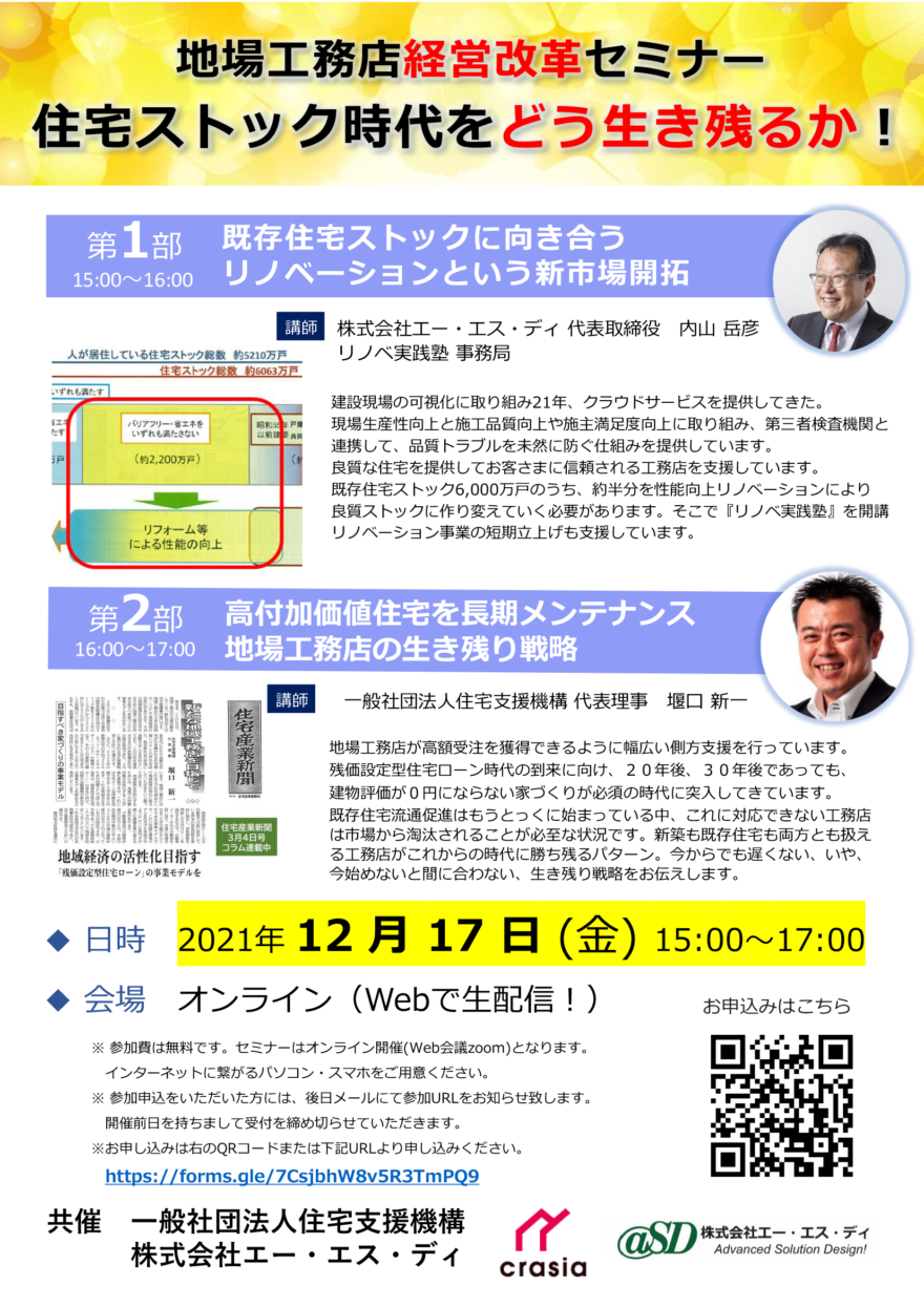 【12/17】地場工務店経営改革セミナー 住宅ストック時代をどう生き残るか!