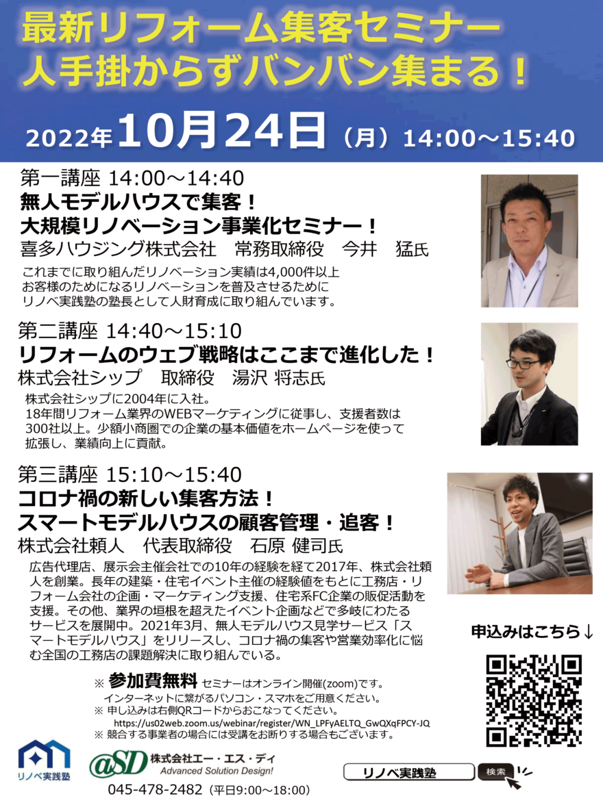 【10/24開催】最新リフォーム集客セミナー 人手掛からずバンバン集まる!